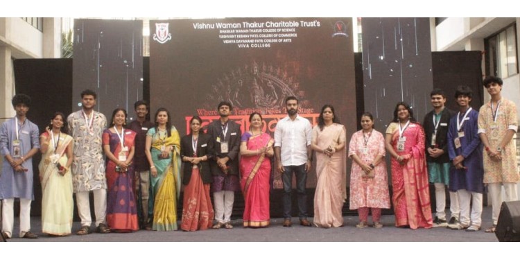 विरार – विवा महाविद्यालयात सांस्कृतिक मंडळाच्या वतीने ” सक्षम” या सांस्कृतिक सप्ताहाला सुरुवात झाली असून विद्यार्थ्यांच्या कला गुणांना हक्काचे व्यासपीठ उपलब्ध करुन देण्यासाठी यंदा ‘सक्षम रंगमंच’ या नव्या संकल्पनेने भव्य आणि ओघवत्या वातावरणात सांस्कृतिक सप्ताहाचा शुभारंभ करण्यात आला. या सोहळ्याने महाविद्यालयाच्या वार्षिक सांस्कृतिक सप्ताह २०२५-२६ ची औपचारिकरीत्या सुरुवात झाली. विद्यार्थ्यांचा उत्स्फूर्त सहभाग,कलाकृतींचा जलवा आणि सांस्कृतिक तेजाने महाविद्यालय उत्साहाने उजळून निघाले.या कार्यक्रमाचे उद्घाटन विष्णू वामन ठाकूर चॅरिटेबल ट्रस्टचे खजिनदार शिखर ठाकूर यांच्या हस्ते करण्यात आले. यावेळी महाविद्यालयाच्या प्रभारी प्राचार्या डॉ. दीपा वर्मा, उपप्राचार्या डॉ. प्राजक्ता परांजपे, महाविद्यालयाच्या सांस्कृतिक समिती प्रमुख प्रियांका ब्रिद , सांस्कृतिक समिती सहकार्यवाहक अभिषेक माडये, आयक्यूएसई समन्वयक डॉ. रोहन गवाणकर, आयक्यूएसई सहसमन्वयक डॉ. अनुश्री किणी, विवा स्टुडंट काउन्सिलच्या प्रमुख तृप्ती पाटील उपस्थित होते. या कार्यक्रमाचे सूत्रसंचालन डॉ. एलिना गोन्साल्विस आणि डॉ. रोहन गवाणकर यांनी केले.
