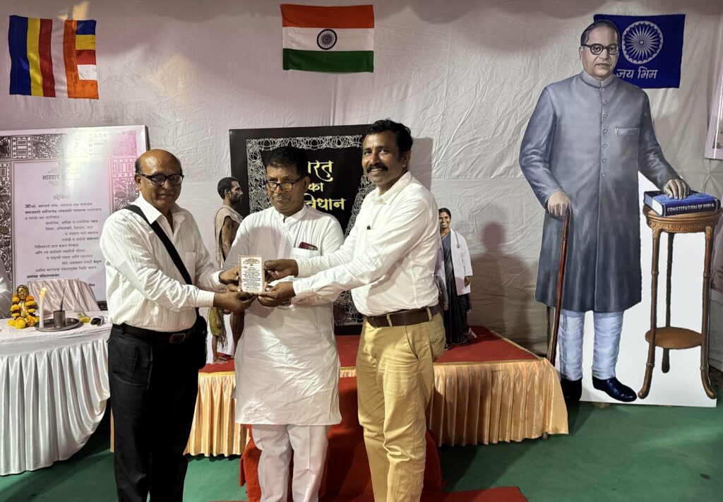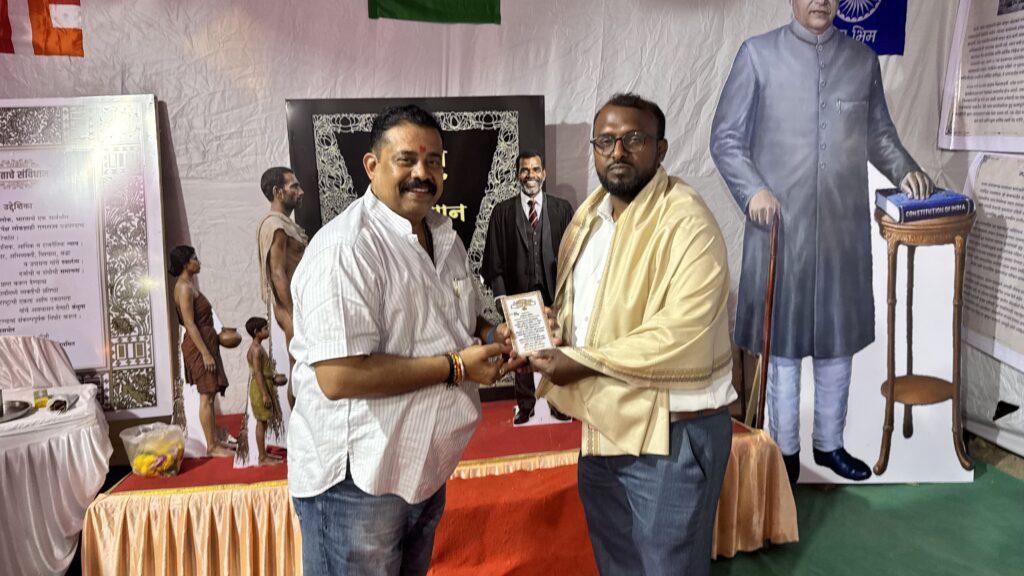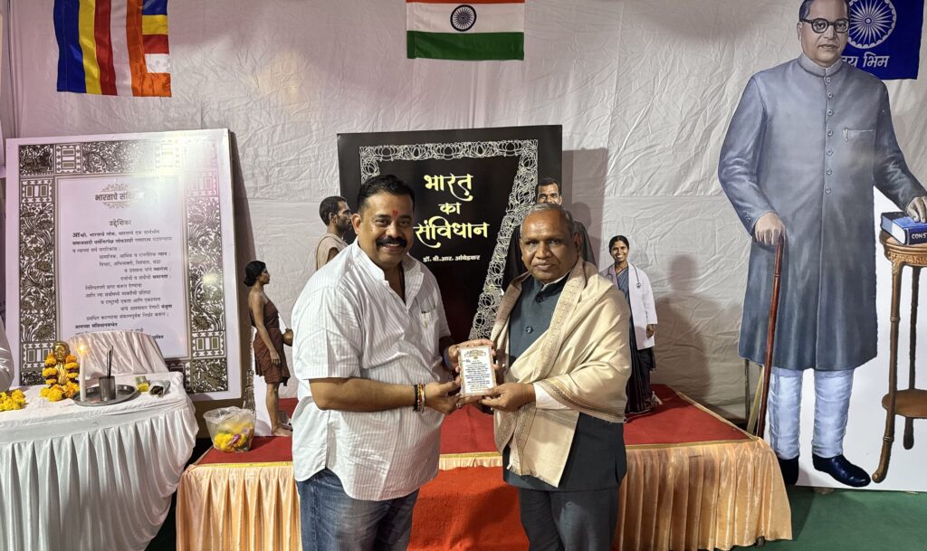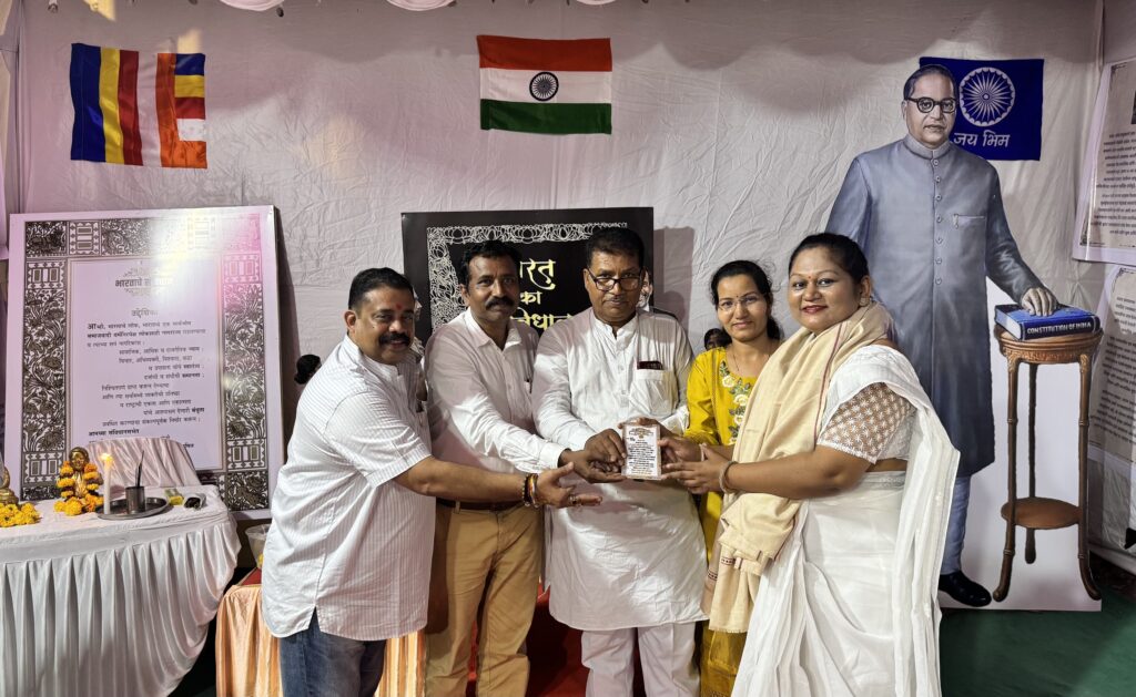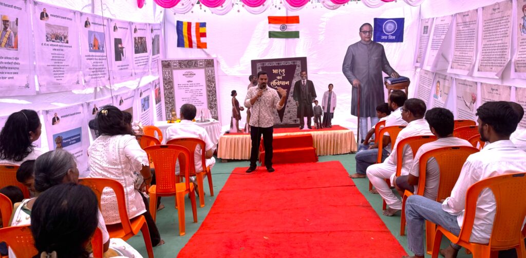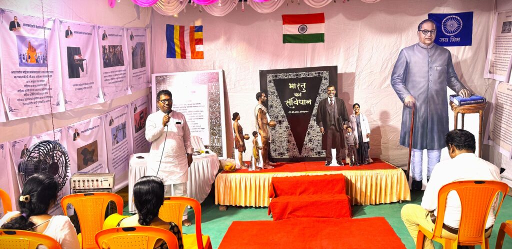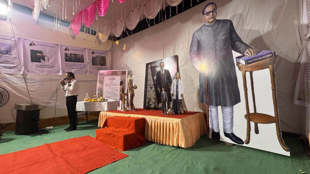 मंगळवार, १४ एप्रिल २०२६ रोजी सकाळी ११ वाजता सामूहिक बुद्धवंदना घेण्यात आली. त्यानंतर संविधान म्हणजे काय? या विषयावर वकील व संविधान अभ्यासक अॅड.निलेश जगन्नाथ खानविलकर यांनी व्याख्यान दिले. यावेळी कॉँग्रेसचे नेते इमरान शेख उपस्थित होते.